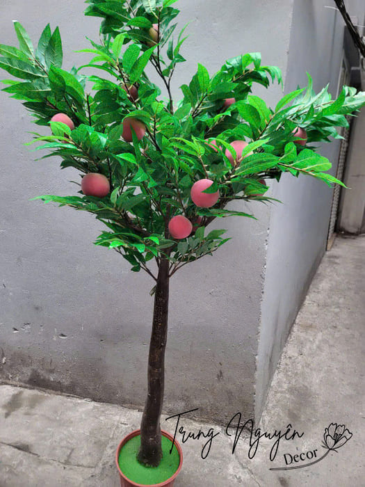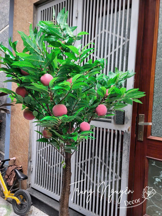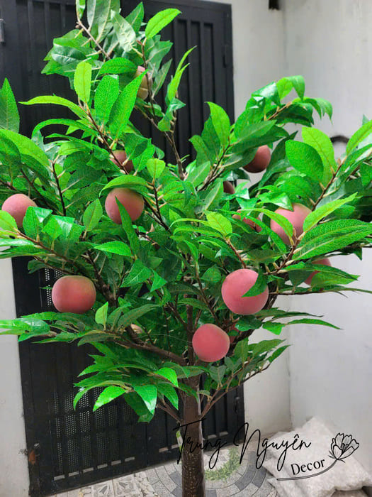 - Mỗi chi tiết của cây đào quả hồng giả đều được thiết kế tỉ mỉ, từ thân cây, cành lá đến hoa và quả, tạo nên một tổng thể hài hòa, sống động.
