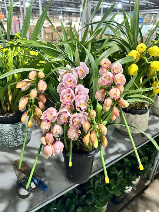 Cây địa lan hoa pha màu vàng hồng rất bắt mắt