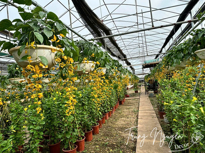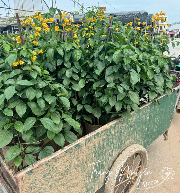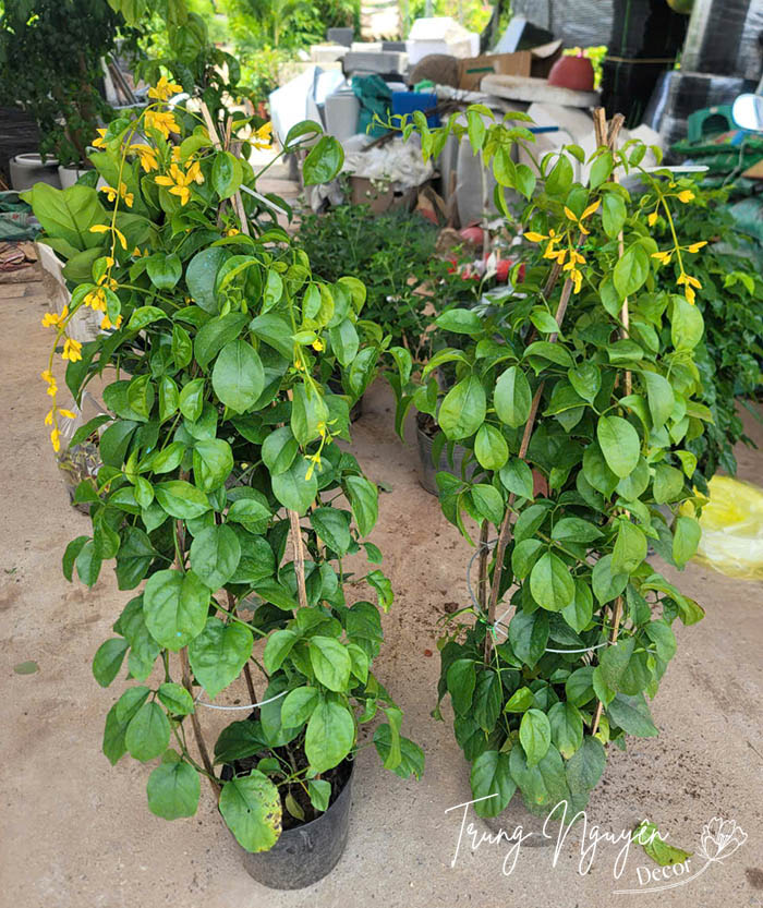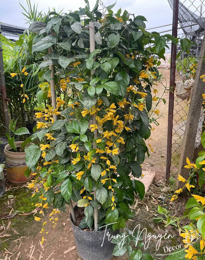 Lan hoàng dương – cây leo khỏe, hoa vàng rực rỡ, nở bền lâu. Trồng giàn, cổng hay ban công đều đẹp, mang sắc vàng tươi mới và may mắn cho không gian sống