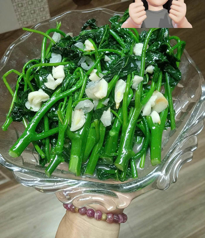 Vặt lá cây rau mỳ chính ngọn xào với tỏi.