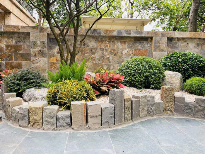 Hàng rào đá trang trí quanh cây tán tròn