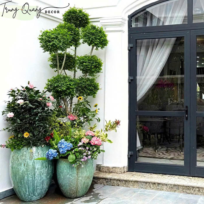 Cây vàng bạc tổ chim trồng lên chậu gốm mix