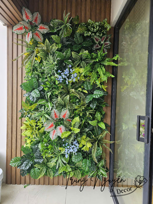 - Trang trí ban công: Tường cây giả mang đến không gian xanh mát, làm dịu mát không khí trong căn hộ chung cư, giúp bạn có một không gian thư giãn lý tưởng.